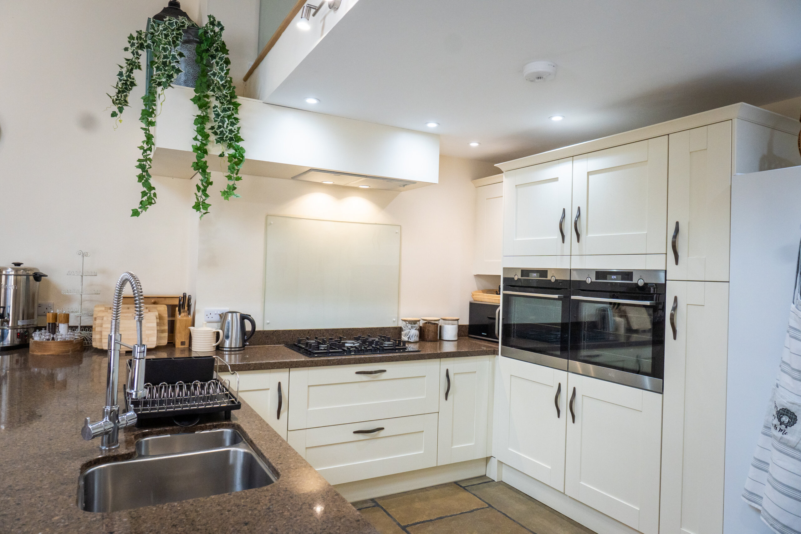 Spacious kitchen and dining area with 5-ring hob, 2 ovens, tall fridge-freezer, wine fridge, and all the essentials for your celebratory weekend