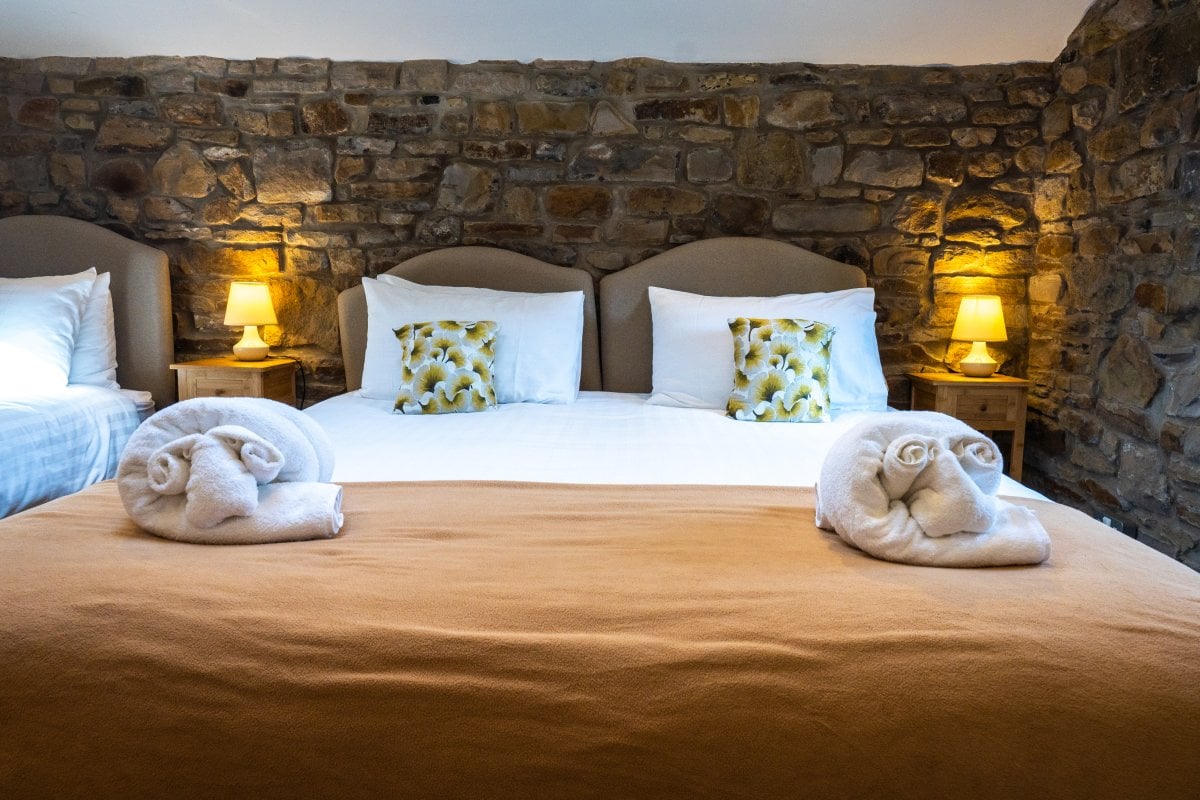 - 7 bedrooms; 2 bedrooms with 2 singles (or a double), 1 bedroom with 4 singles (or 2 doubles), 4 bedrooms with 3 singles (or a double and single), double mattress on the floor in the attic area